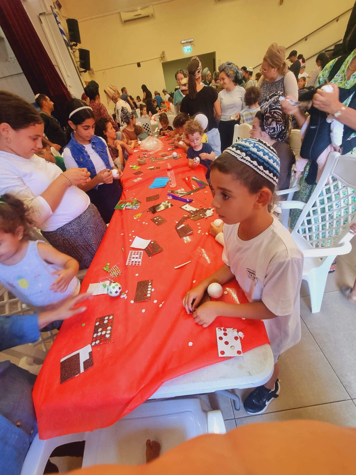 הילדים גזרו, קישטו, ציירו, הדביקו – ויצרו יחד שלל קישוטים מרהיבים לסוכות בבית ובקהילה והפעילות כללה הדרכה צמודה של מדריכות היצירה, מוסיקה חגיגית, חלוקה של כיבוד קל – ובעיקר הרבה שמחה, יצירתיות והתרגשות לקראת החג – ההורים לקחו חלק פעיל, והאולם הקהילתי לבש חג ברוח ערכי הסוכה – שמחה, אירוח, חיבור בין-דורי וקהילתיות