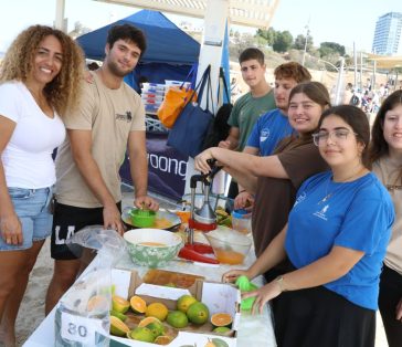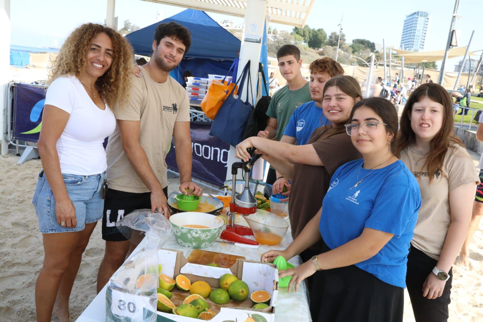 על החוף חיכתה למשתתפים עמדת ריענון מפנקת של מיץ תפוזים סחוט באדיבות הקומונה של התנועה החדשה בשומר החדש בשיתוף עם מחלקת הנוער העירונית.