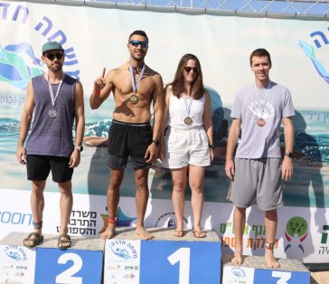 במים – קיבלנו חגיגה של שחייה. במקצה הארוך ל-4.3 ק"מ הפתיחה הייתה בקצב רגוע, עם כעשרה שחיינים בדבוקה המובילה, אלא שאז דניאל קציר החליט לעשות לזה סוף. השחיין המעוטר הרים הילוך, ברח לדבוקה ולא עצר עד לקו הסיום. הוא ניצח בזמן של 1:02:02 שעות. שגיא כהן, חברו לקבוצת Easy Swim, סיים שני, ואיתן דימונד מבני הרצליה שלישי.