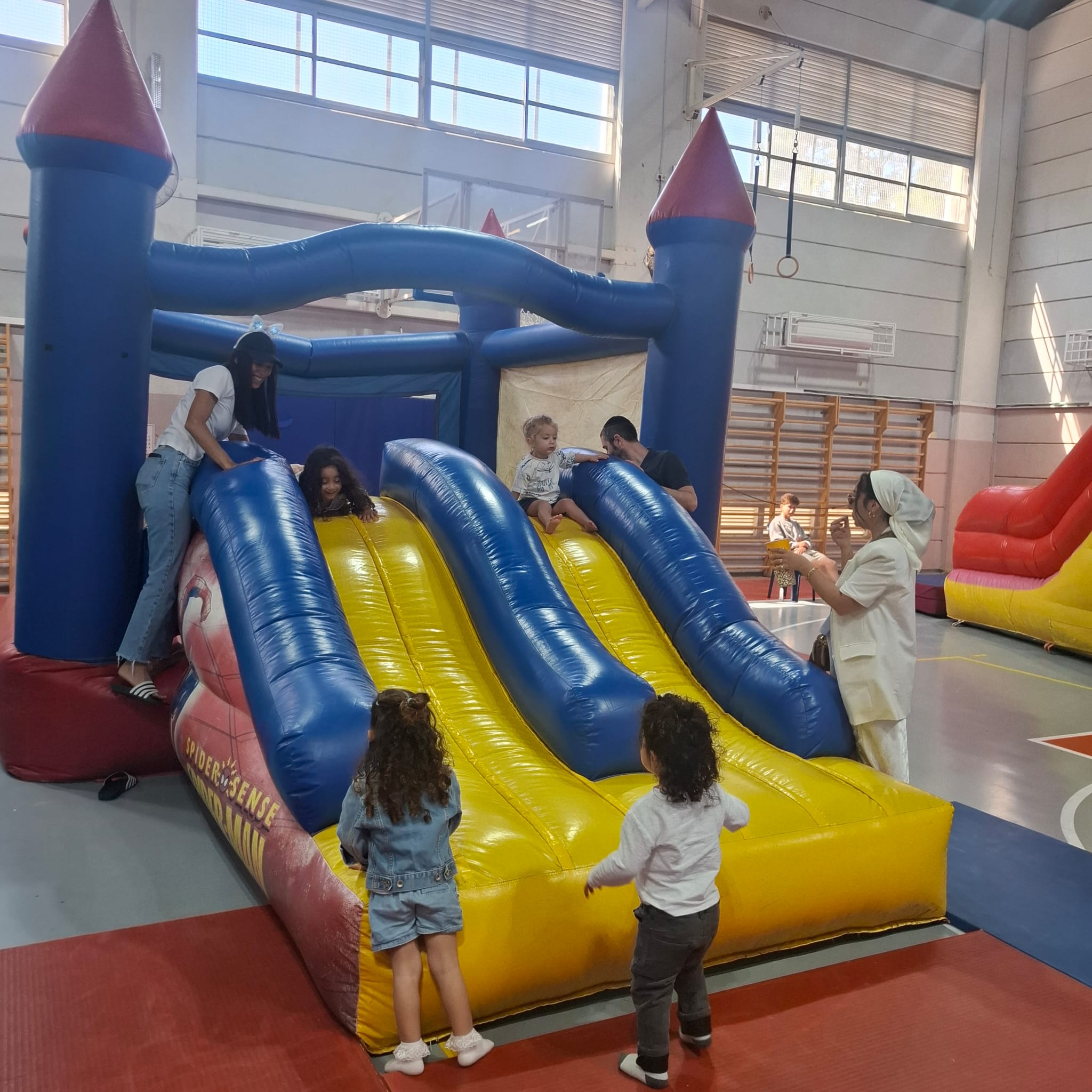 משעות הבוקר ועד שעות אחר הצהריים, זרמו לאולם הספורט מאות ילדים, הורים ומשפחות, שנהנו מהפנינג עשיר שכלל מתנפחים, מתחמי משחק, פעילויות מגוונות והמון הפתעות. האולם הפך במהרה למרחב חי, צבעוני ושמח, שבו כל ילד מצא את המקום שלו – לרוץ, לשחק, לצחוק ובעיקר ליהנות.