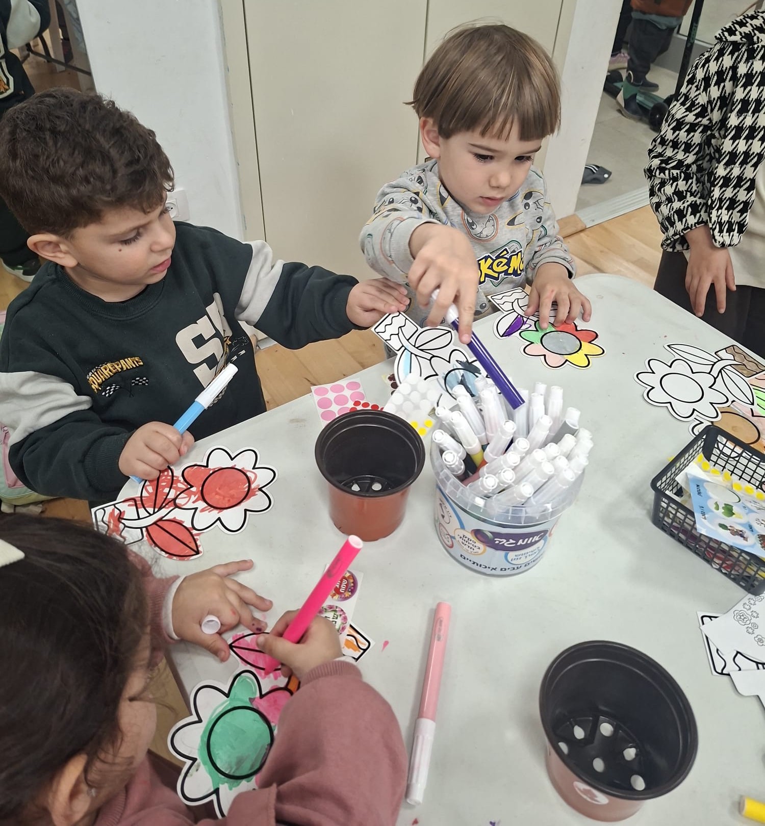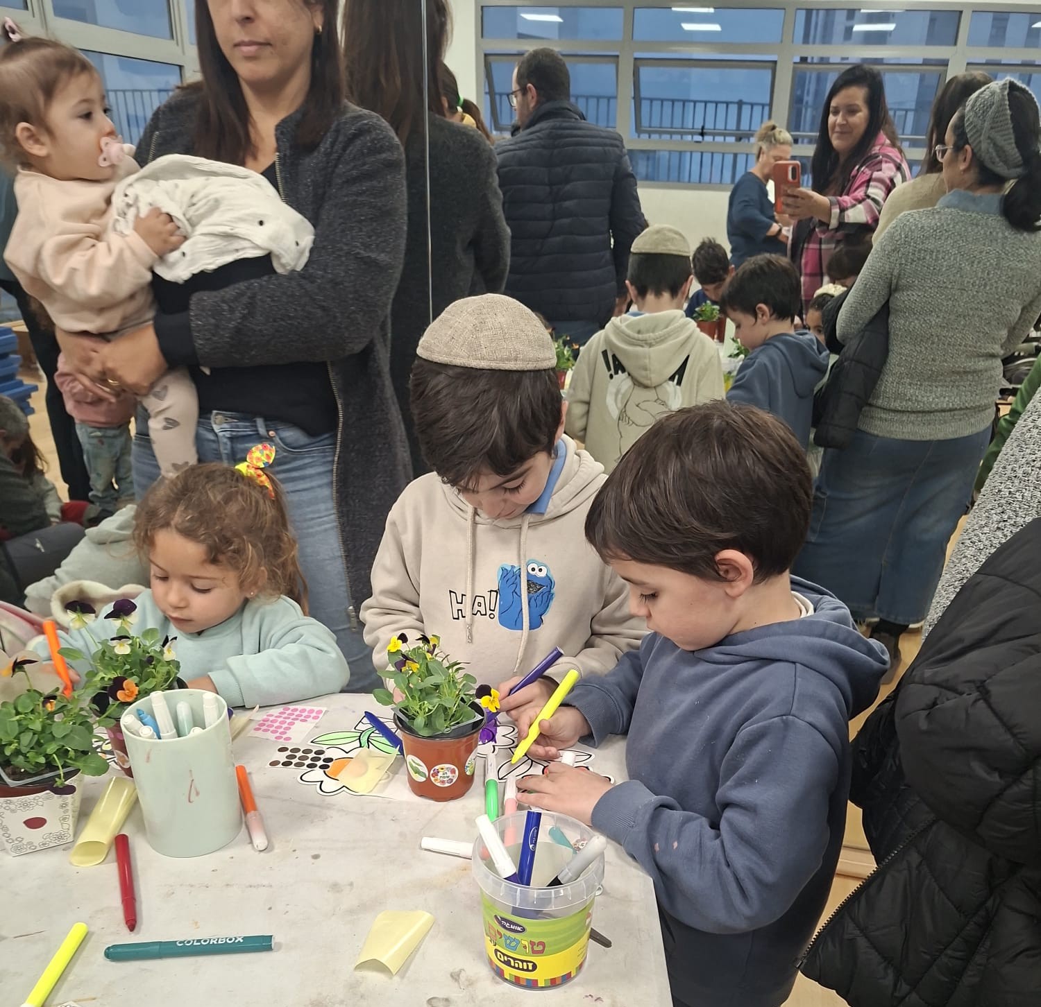 במהלך הפעילות השתתפו הילדים יחד עם ההורים במגוון תחנות חווייתיות: שתילת שתילים בעציצים אישיים, קישוט ויצירה בהשראת החג, והאזנה לשעת סיפור מרתקת עם חבובה. הילדים נראו מרוכזים, סקרנים ונלהבים, בעוד ההורים ליוו, עודדו ולקחו חלק פעיל – יד ביד, לב אל לב.