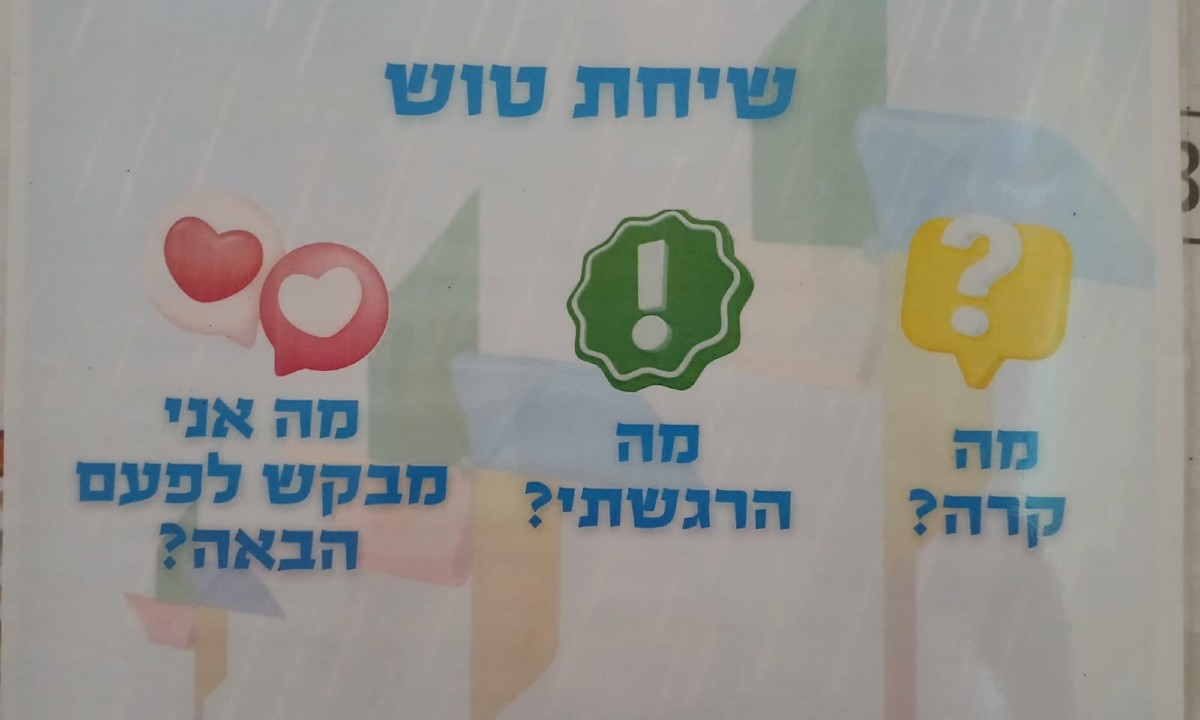 במסגרת התהליך שמובילה היועצת החינוכית מלכי, לומדים הילדים כיצד לנהל שיחה שקולה – תוך הקשבה, ביטוי רגשות, קבלת אחריות וחיפוש פתרון משותף. כל זאת בעזרת "טוש" סמלי, שמועבר מהילד שמדבר לזה שמאזין – כסמל להקשבה אמיתית וכבוד הדדי.